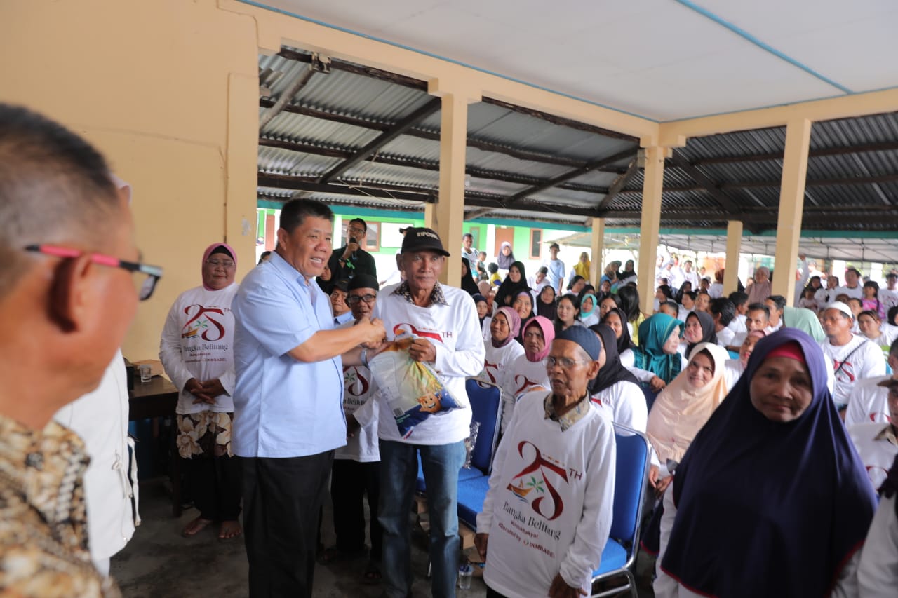 “Pembagian sembako ini adalah wujud kepedulian dan rasa cinta kami terhadap masyarakat Belitung, semoga Belitung semakin makmur, sejahtera dan berdaya,” ujar Hidayat Arsani.