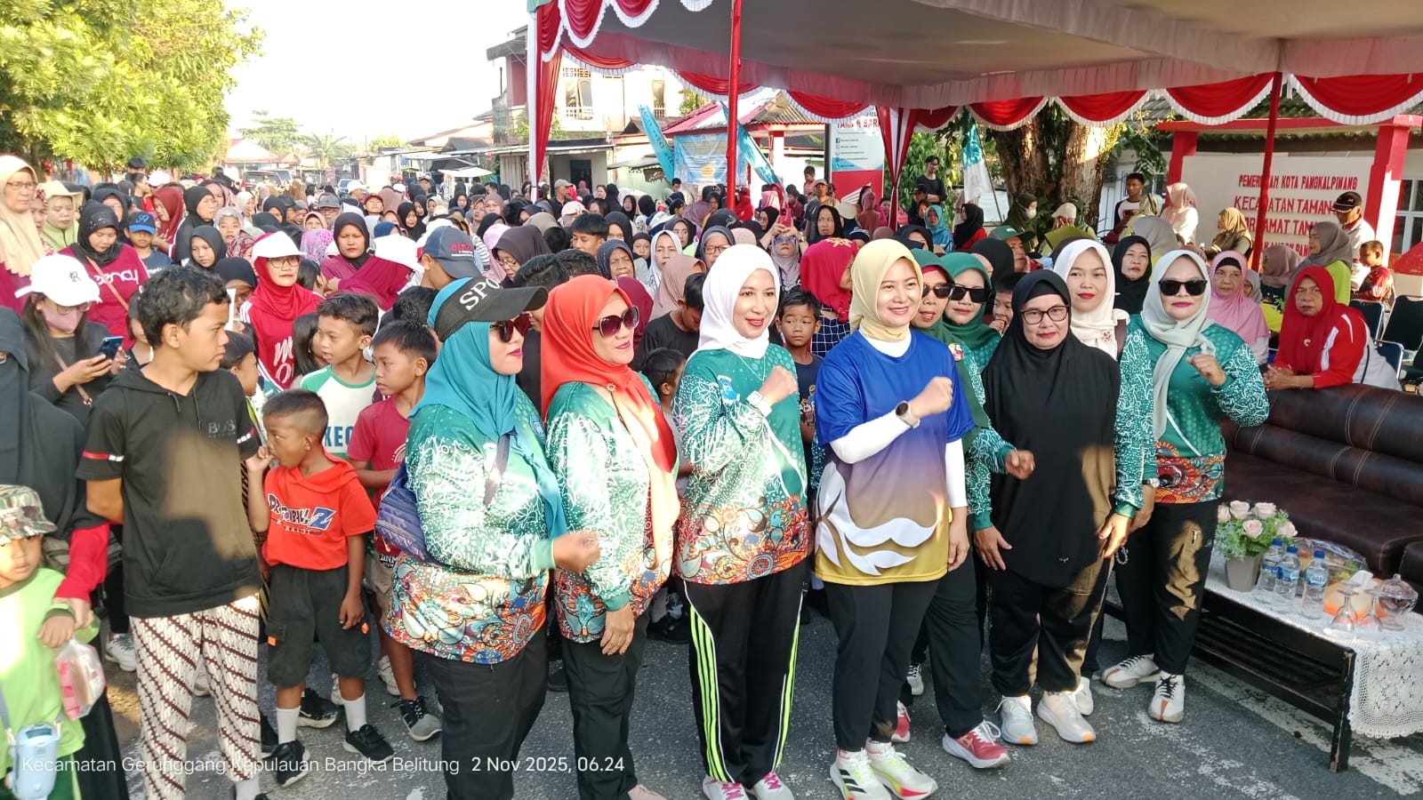 PANGKALPINANG – Wakil Wali Kota Pangkalpinang, Dessy Ayutrisna, melepas peserta jalan santai dalam rangka memperingati HUT Kemerdekaan RI di Kecamatan Teman Sari, Minggu (2/11/2025).