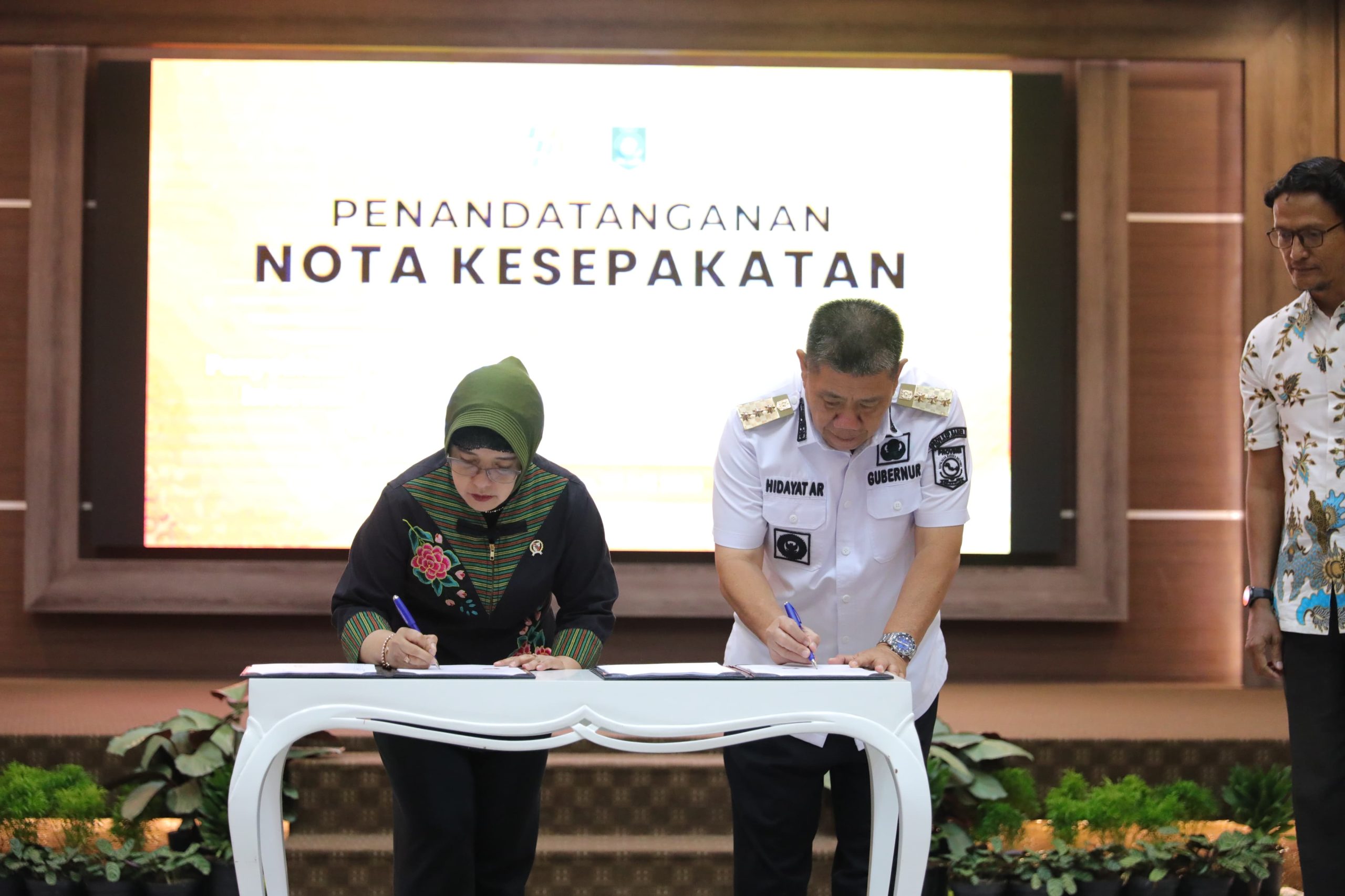 Penandatanganan yang dibubuhi antara Gubernur Babel, Hidayat Arsani dan Kepala BPS RI, Amalia Adininggar Widyasanti.
