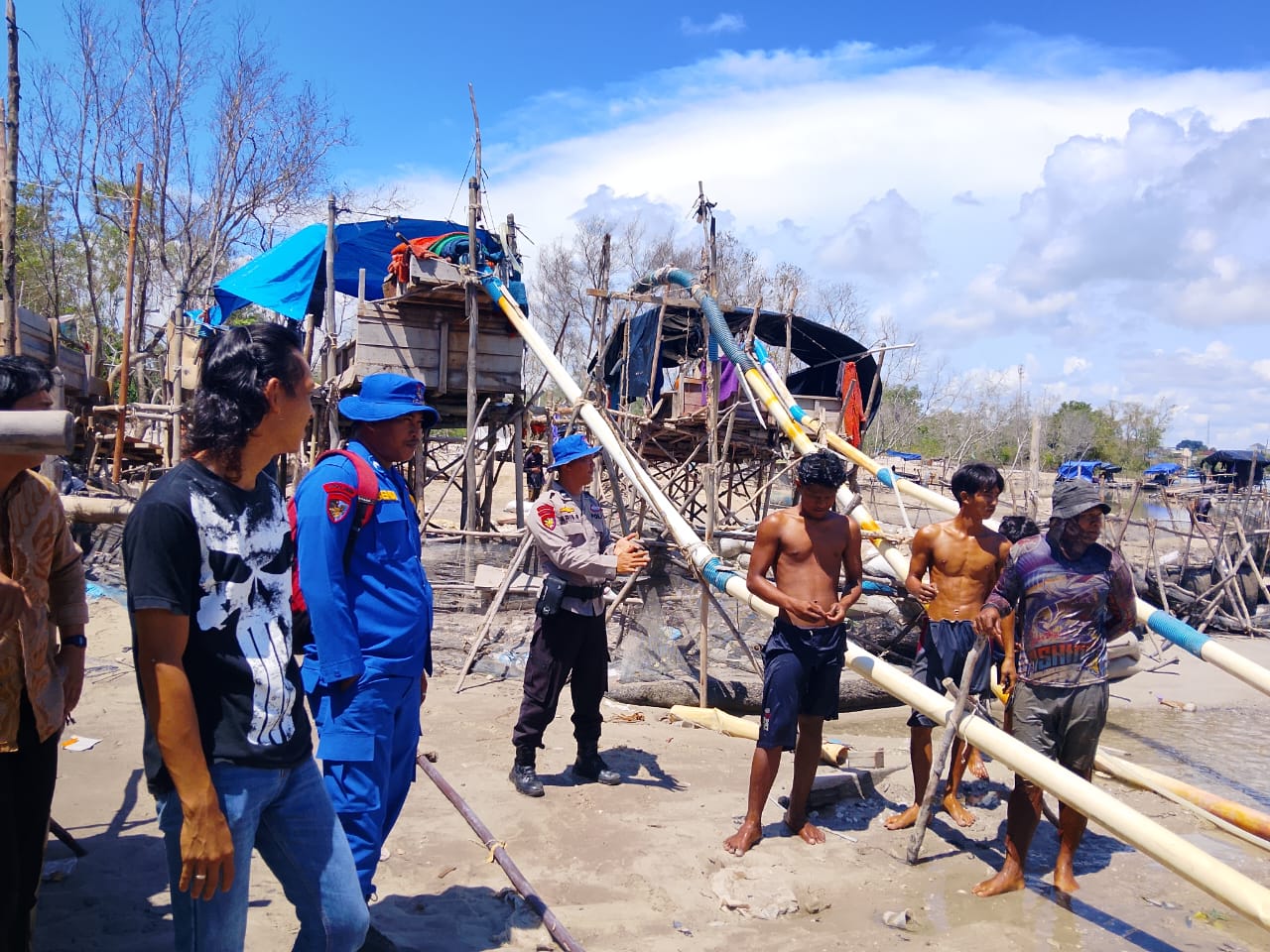 BANGKA – Tim gabungan Polres Bangka memberikan himbauan kepada pemilik dan pekerja tambang jenis ponton rajuk tower yang beroperasi di DAS alur nelayan 2 serta di pesisir Muara Air Kantung Jelitik, Kecamatan Sungailiat, Jumat (24/4/2026).