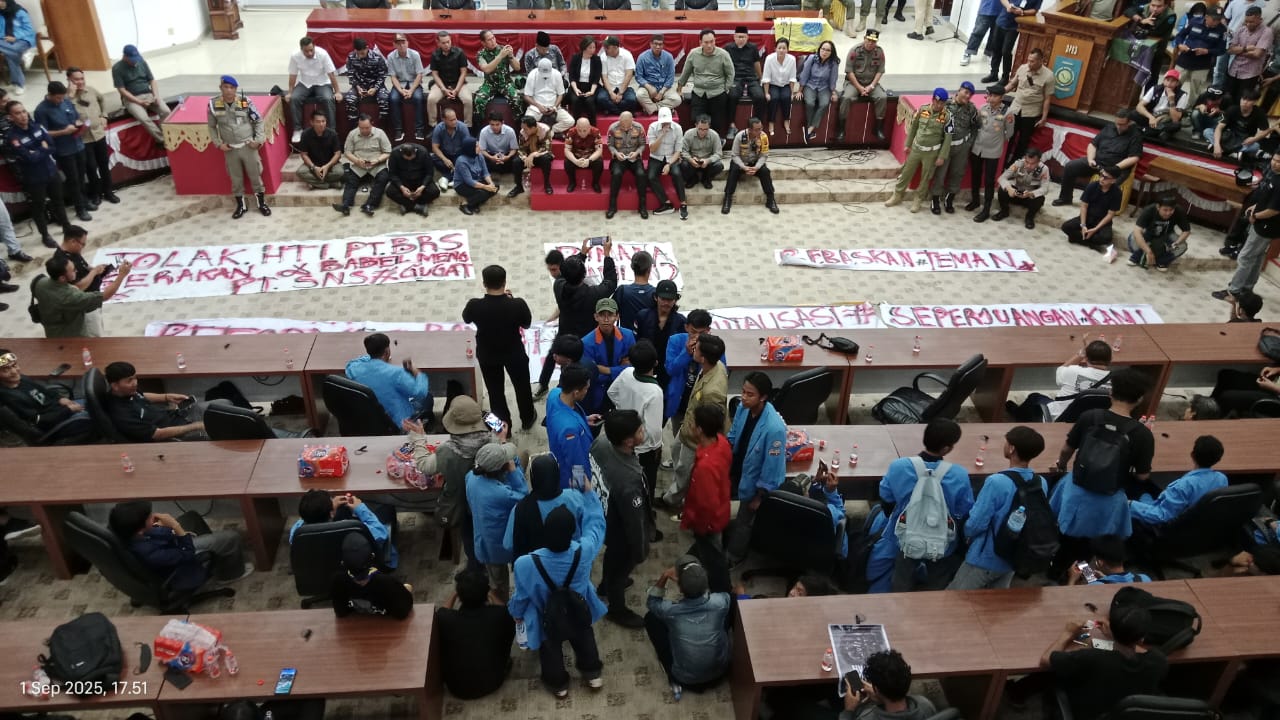 Aksi berlangsung secara tertib dan ditutup dengan audiensi bersama Gubernur Kepulauan Bangka Belitung Hidayat Arsani, Ketua DPRD Babel Didit Srigusjaya, jajaran anggota DPRD, serta Forum Koordinasi Pimpinan Daerah (Forkopimda) di ruang rapat paripurna, Senin, (1/9/2025).